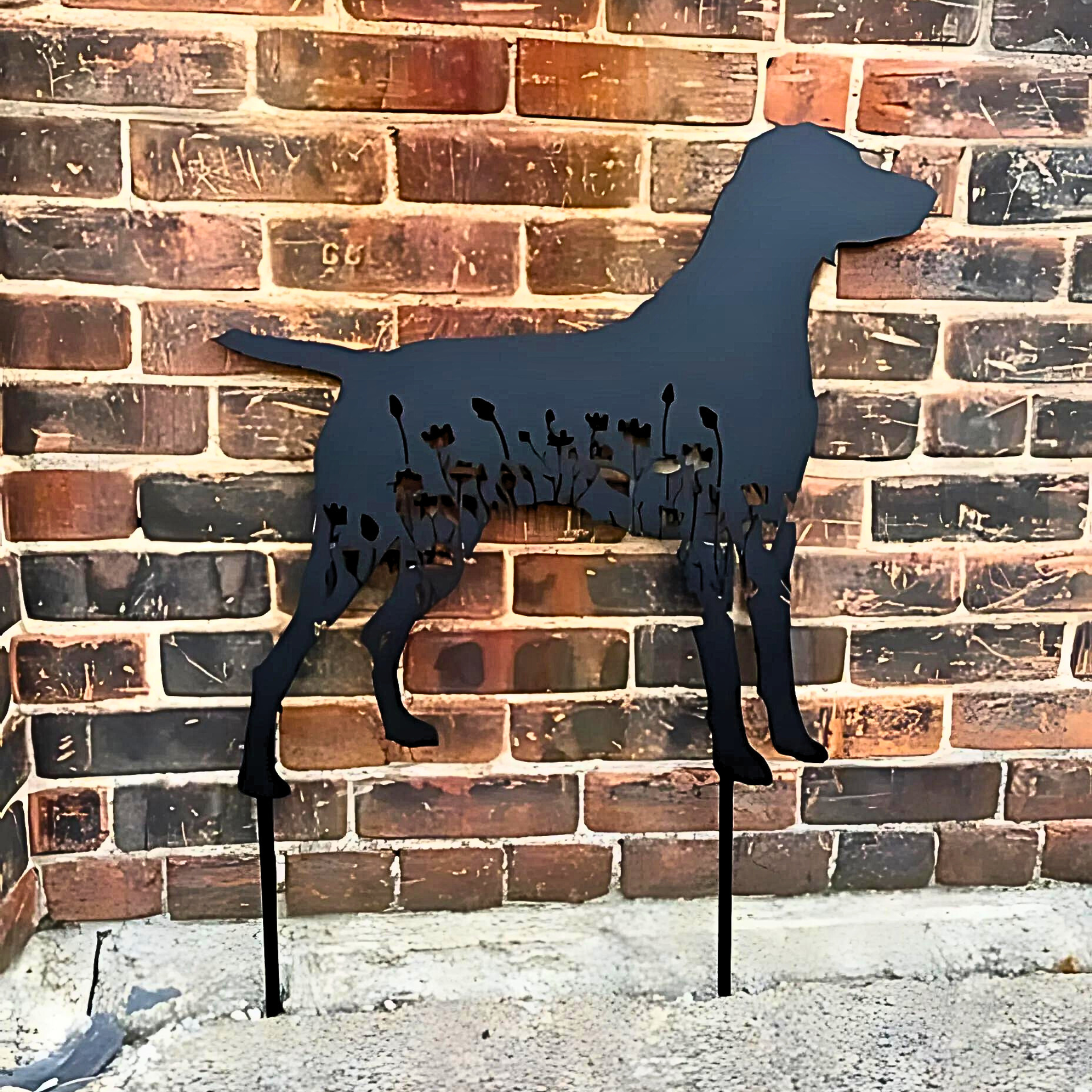 Dog Silhouette created from client photo with attached stakes for placement in memorial garden
